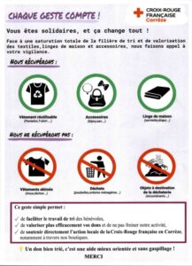 Dans le reste du département, la collecte généralisée a été suspendue provisoirement en raison de la saturation de la filière de traitement du textile. En effet, les dons n’étant pas réutilisables eu égard à leur détérioration, étaient pris en charge par des entreprises habilitées à revaloriser et recycler ces textiles, chaussures et linges de maison.